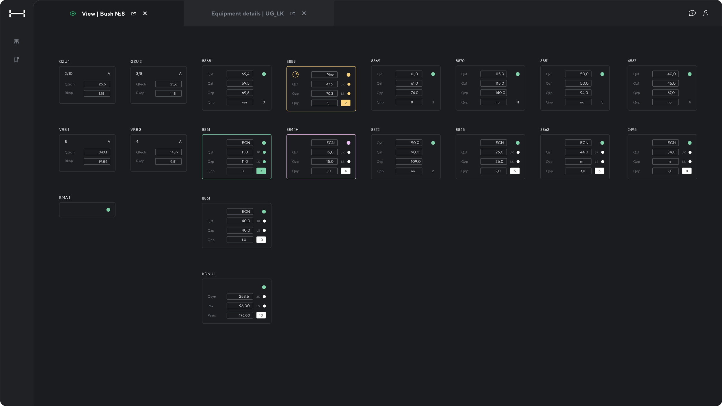Equipment details & Bush