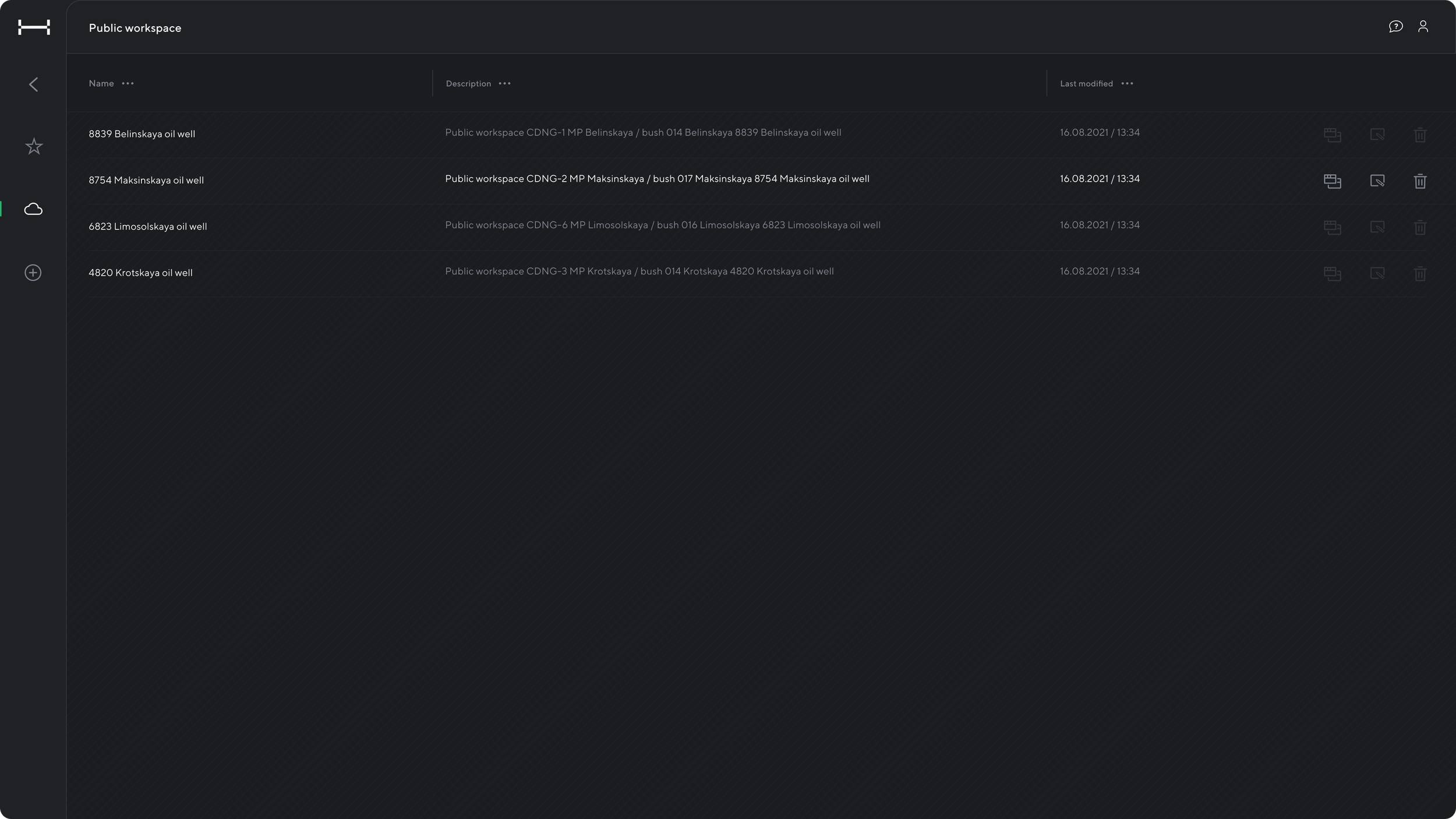 The workspace page provides a distinctive interface with additional tools accessible from the main menu. This page enables users to create new workspaces and edit existing ones. Within the workspace, users can create various elements such as trends, schematics, tables, and more. This functionality empowers users to customize their workspaces by incorporating diverse elements that suit their specific needs and preferences.